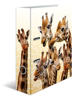 Bunter DIN A4 Motivordner, lustiges Tier-Motiv mit Innendruck, Giraffen mit ihren schönen Augen und den langen Wimpern sind wahre Eyecatcher in der Tierweltserie, Motive die für gute Laune sorgen, perfekt für Ordnung in der Schule, Uni, Alltag oder Büro, aus stabilem Karton, mit Griffloch und Hebelmechanik (inkl. Niederhalter, zur sicheren Aufbewahrung gelochter Dokumente, Ordnung sorgt für effiziente Arbeitsweise