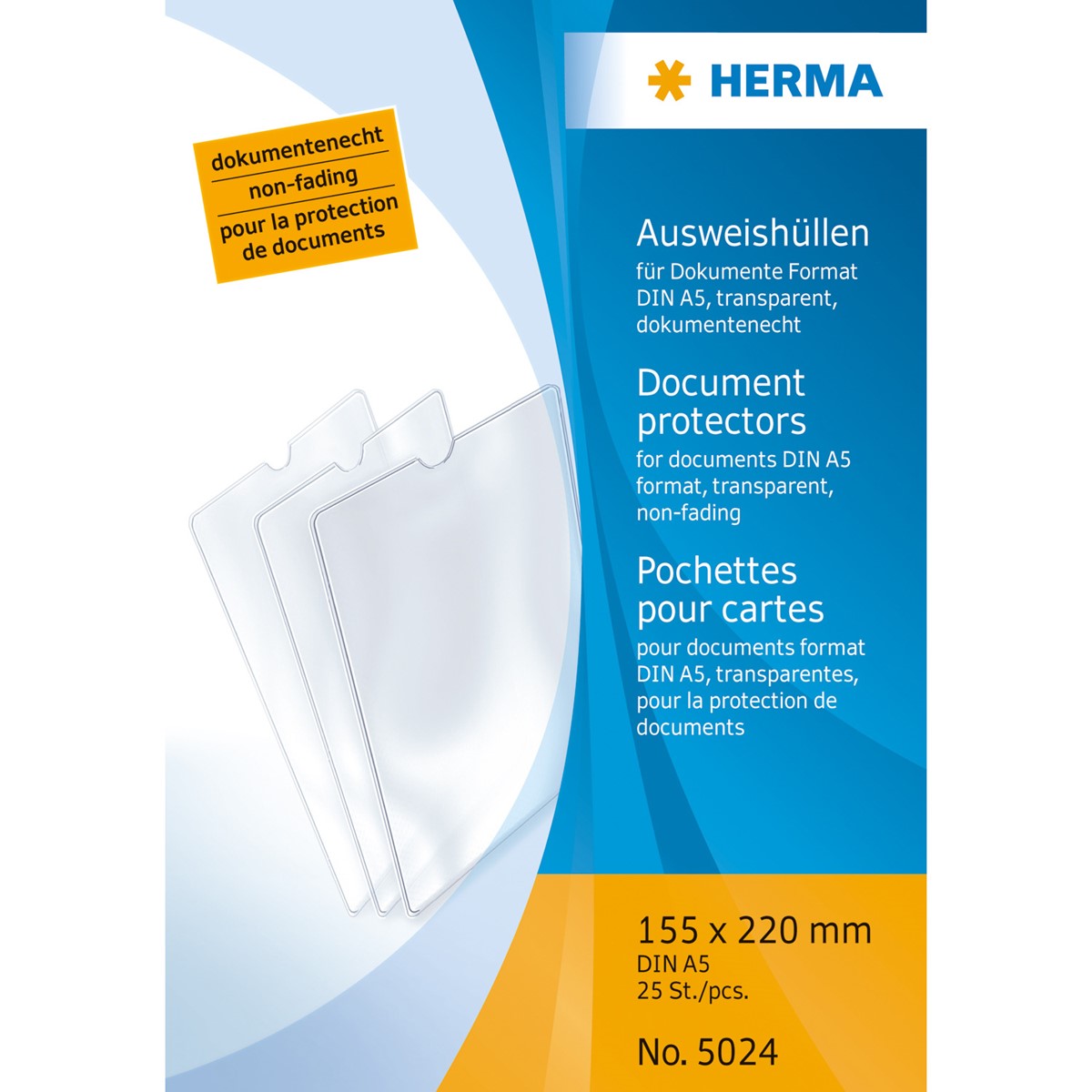 für DIN A5, 155 x 220 mm, 25 Hüllen