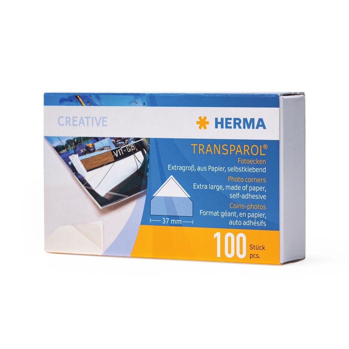 Selbstklebende Fotoecken, extra groß zum Befestigen großformatiger Fotos oder philatelistischer Ganzsachen. Durch überstehende Klarsichttaschen fast unsichtbar. Die Fotos können beliebig oft entnommen und wiedereingesteckt werden. Klebstoff lösemittel - und säurefrei.