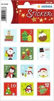 24 wunderschöne Adventssticker mit den Zahlen 1 bis 24, mit Glitzer veredelt, kindgerechtes Design, zum Verschönern und Verzieren, 2 Blätter mit insgesamt 24 Stickern